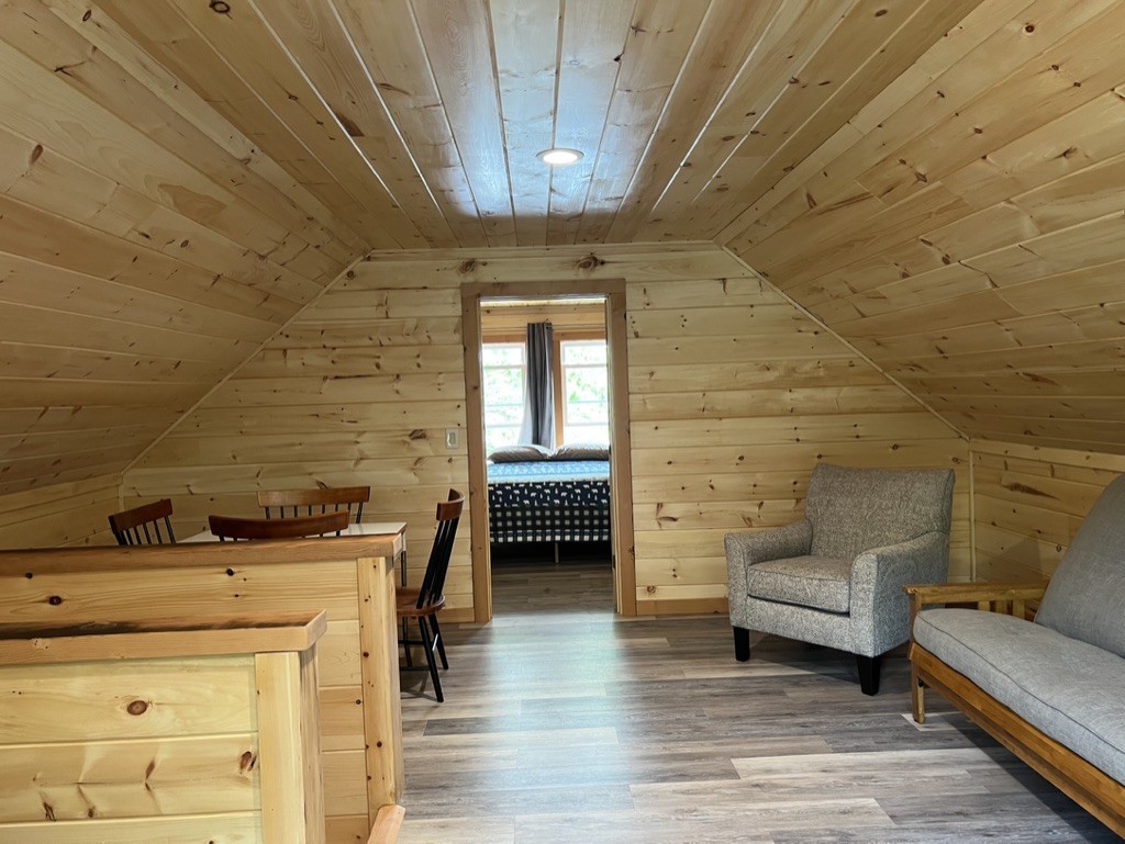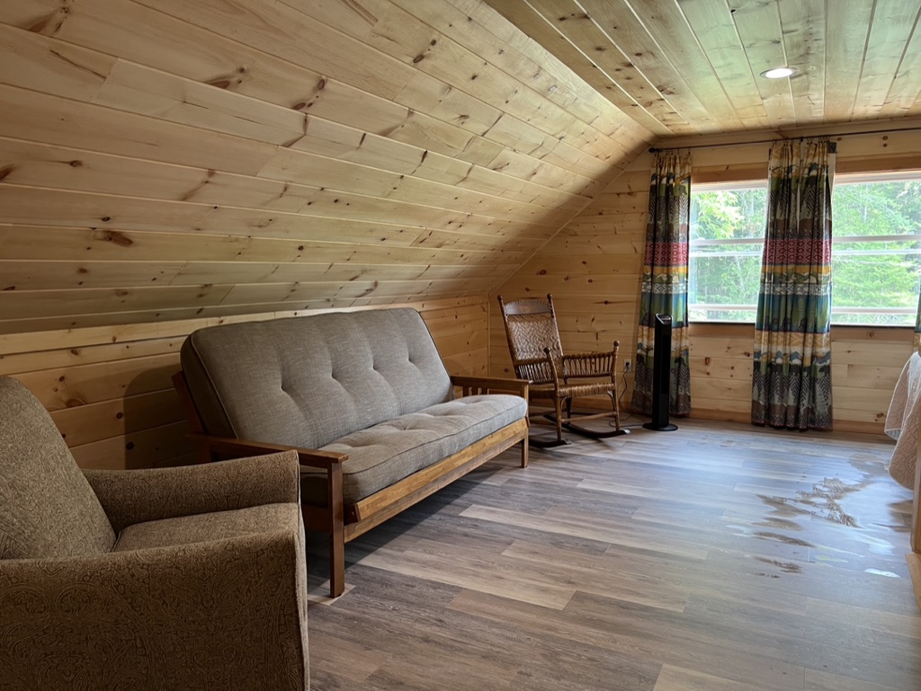 eat room with comfortable seating including a full size futon, and a ‘nook’ with (1) twin bed.